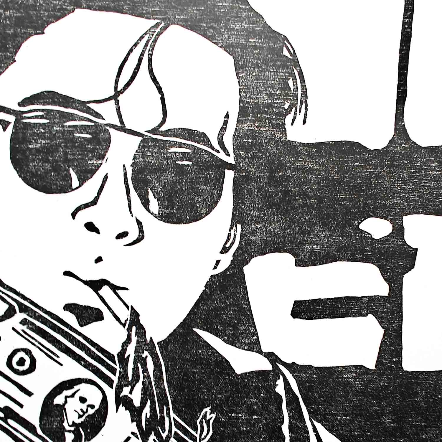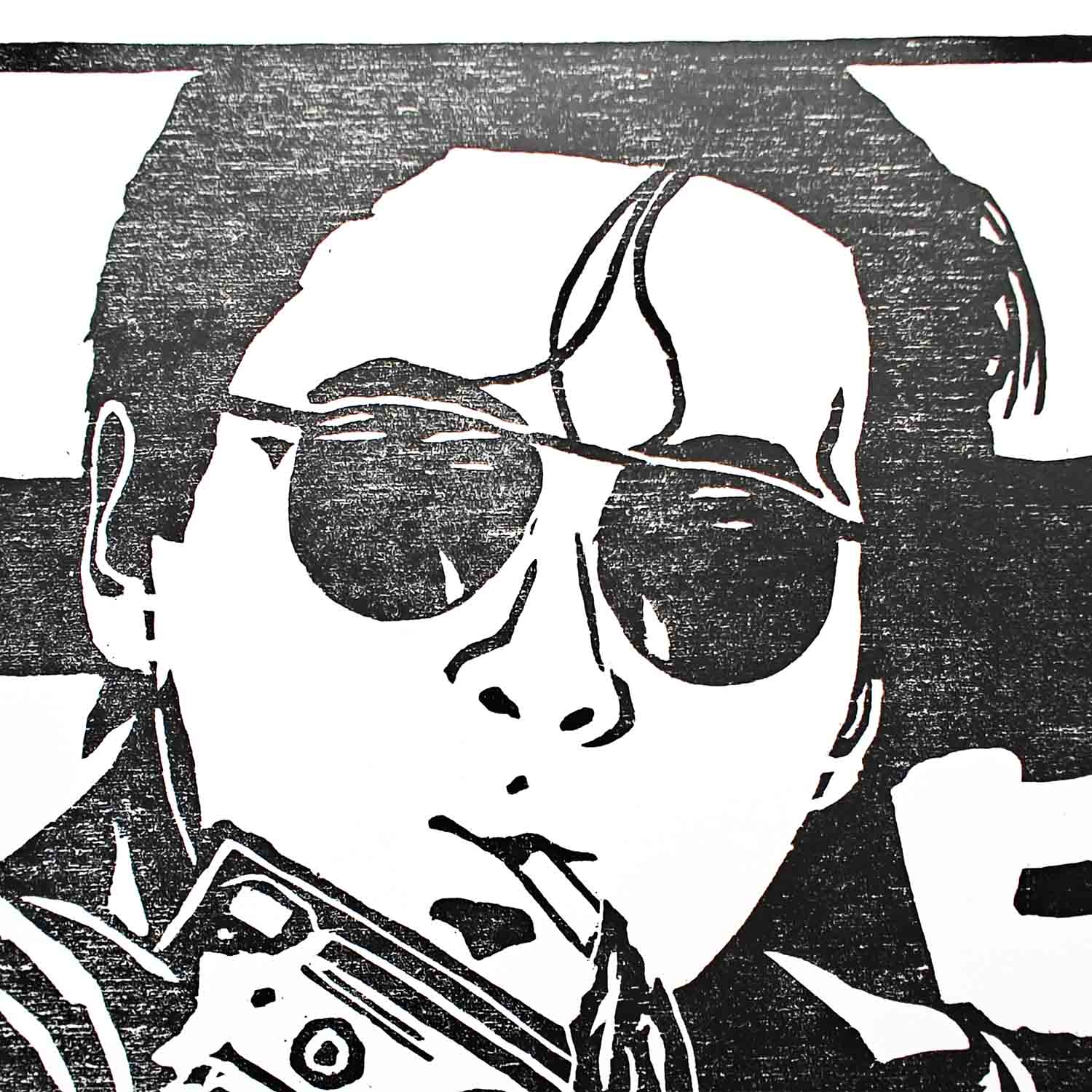 A woodcut print of Mark Lee (Chow Yun Fat) from the classic Hong Kong action film A Better Tomorrow (1986).