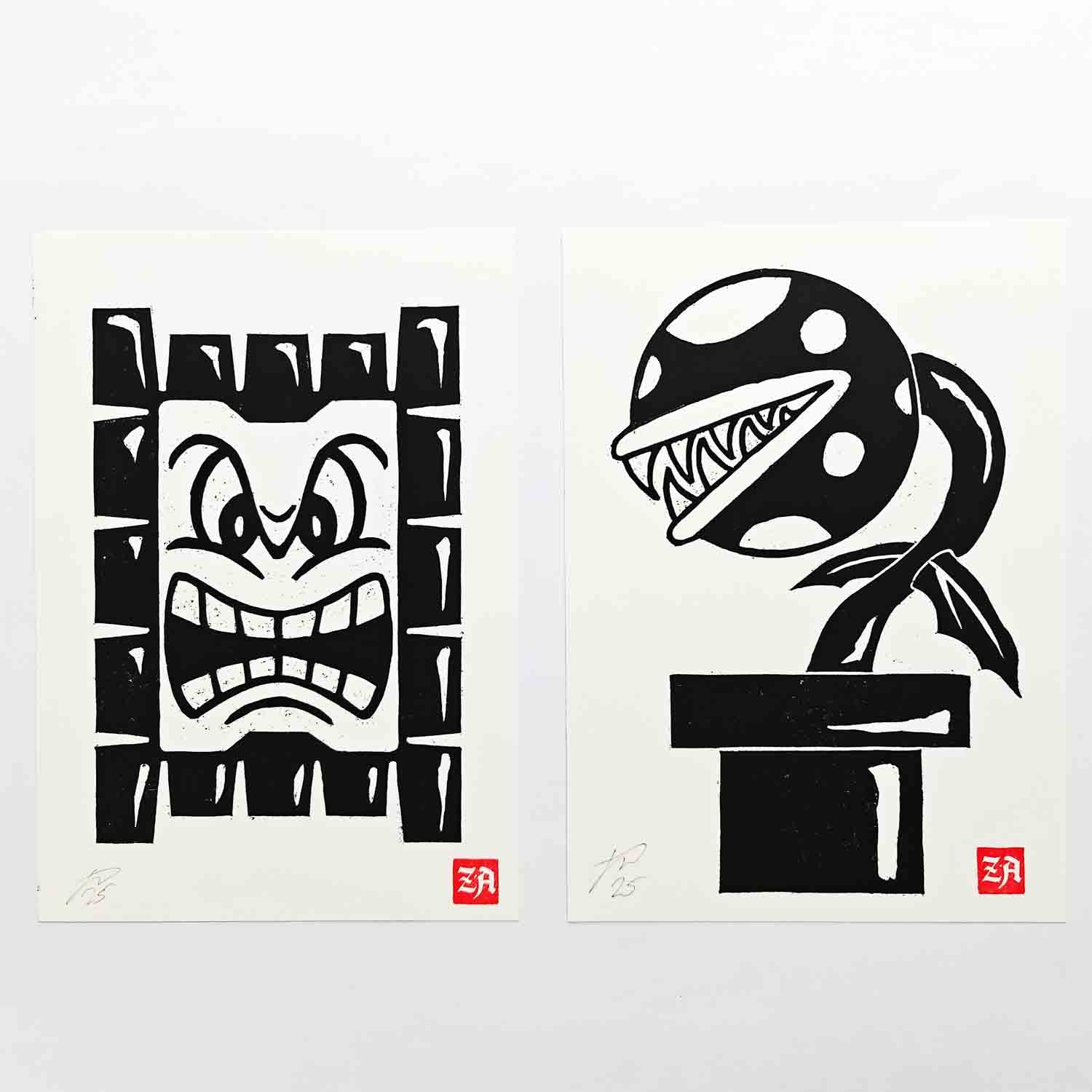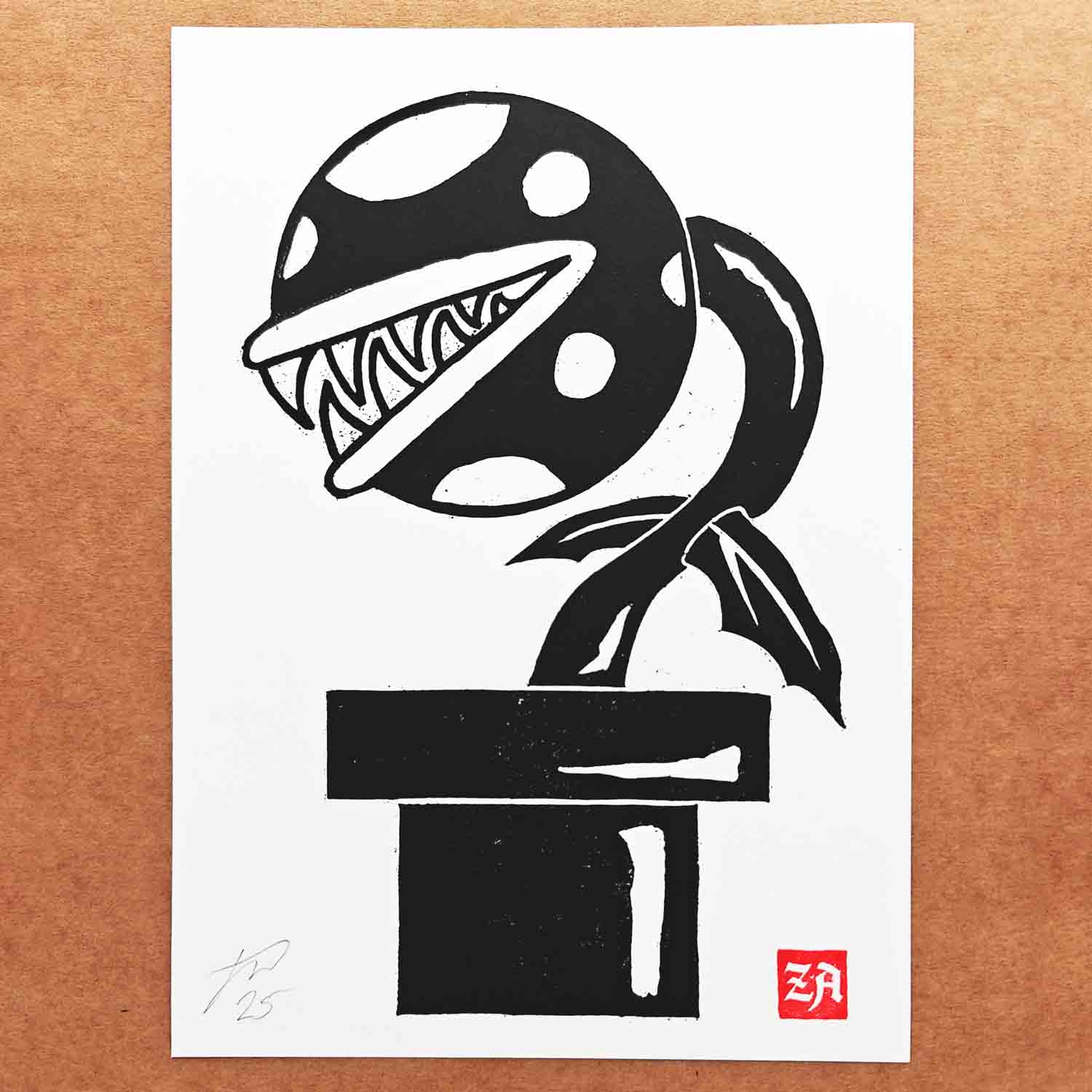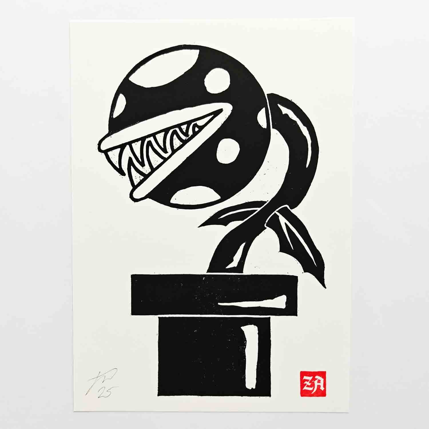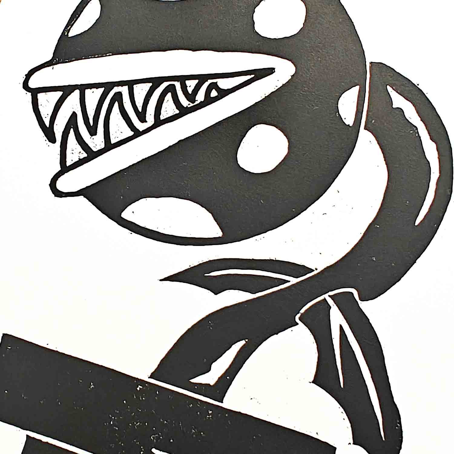 Piranha Plant - woodcut print
